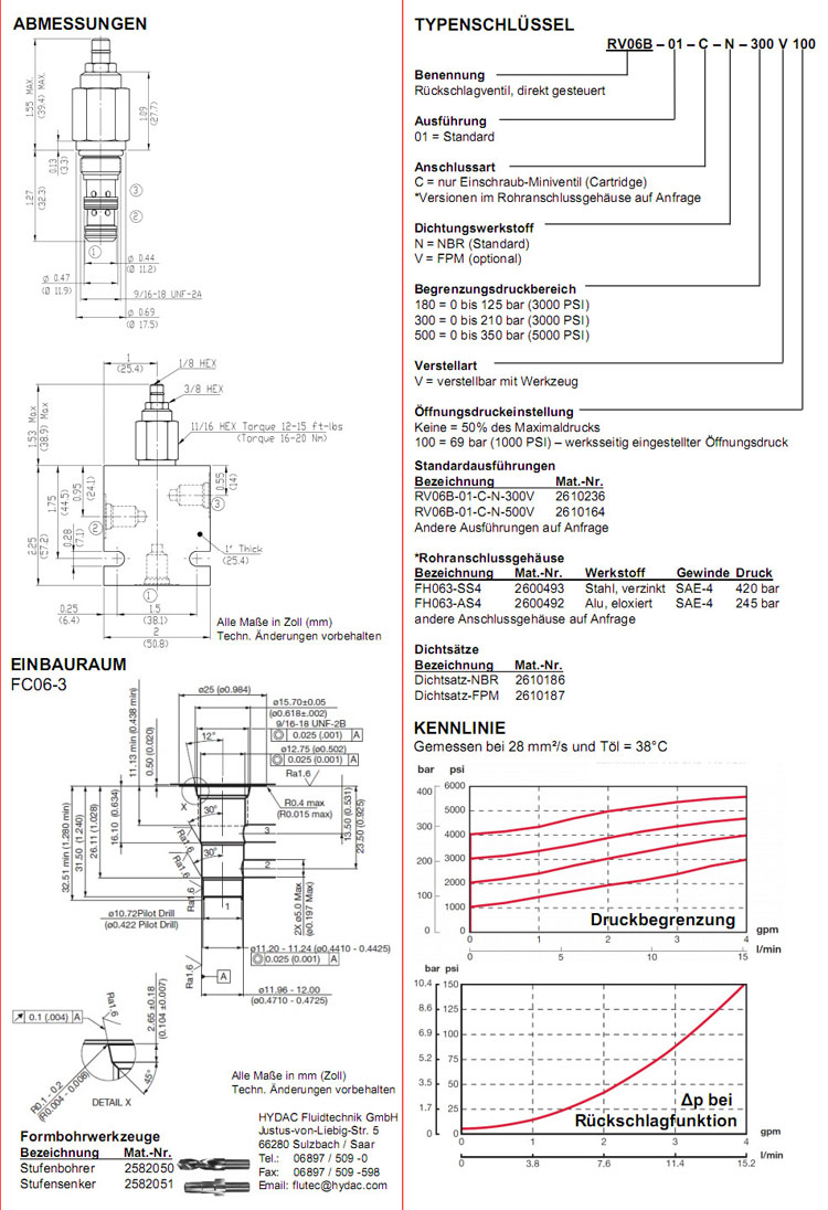 RV06B-01-C-N-300V,RV06B-01-C-N-500V,HYDAC止回閥