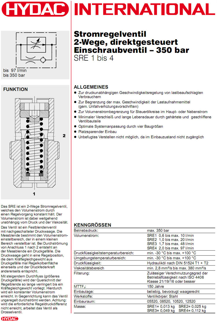 SRE1-G1/4-01X/1.6,SRE1-G1/4-01X/3.8,SRE1-G1/4-01X/6.6,SRE2-G3/8-01X/2.9,HYDAC流量控制閥