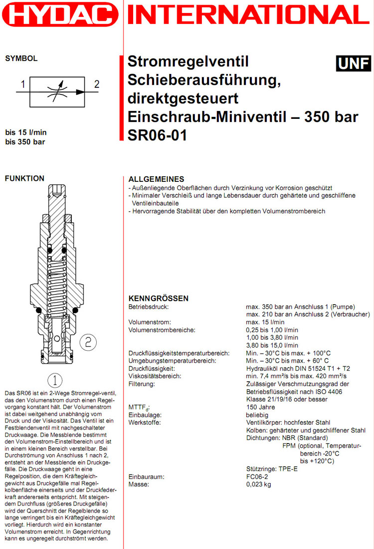 首頁 > 產(chǎn)品&解決方案 > SR06-01-C-N-0.3V,SR06-01-C-N-1.0V,SR06-01-C-N-4.0V,HYDAC流量控制閥