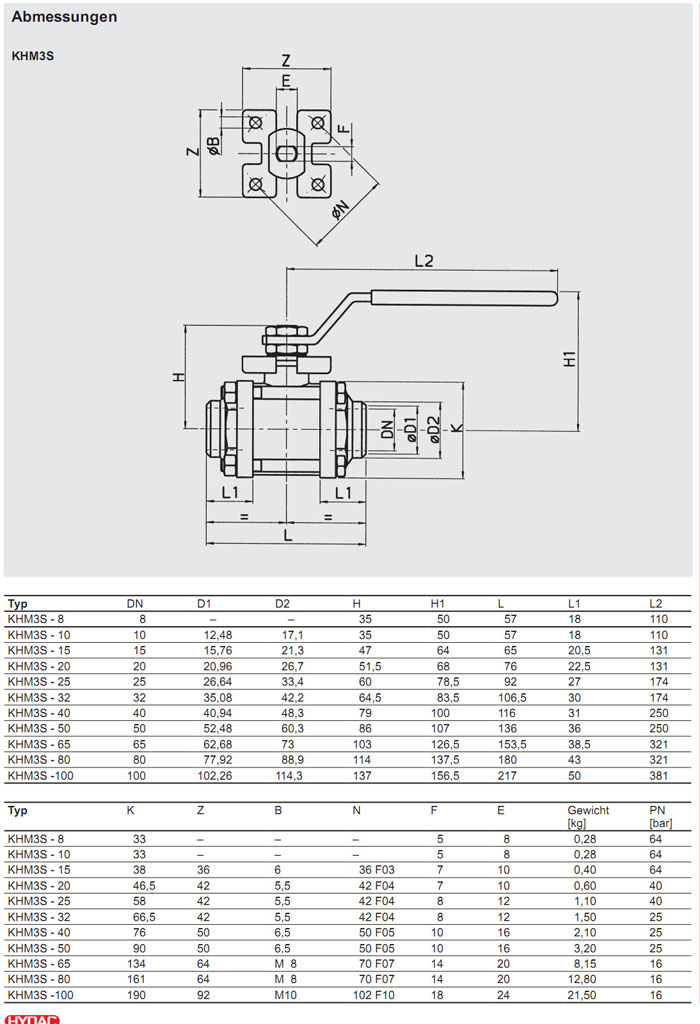 KHM3S-20-1333-16X,HYDAC 2路低壓球閥