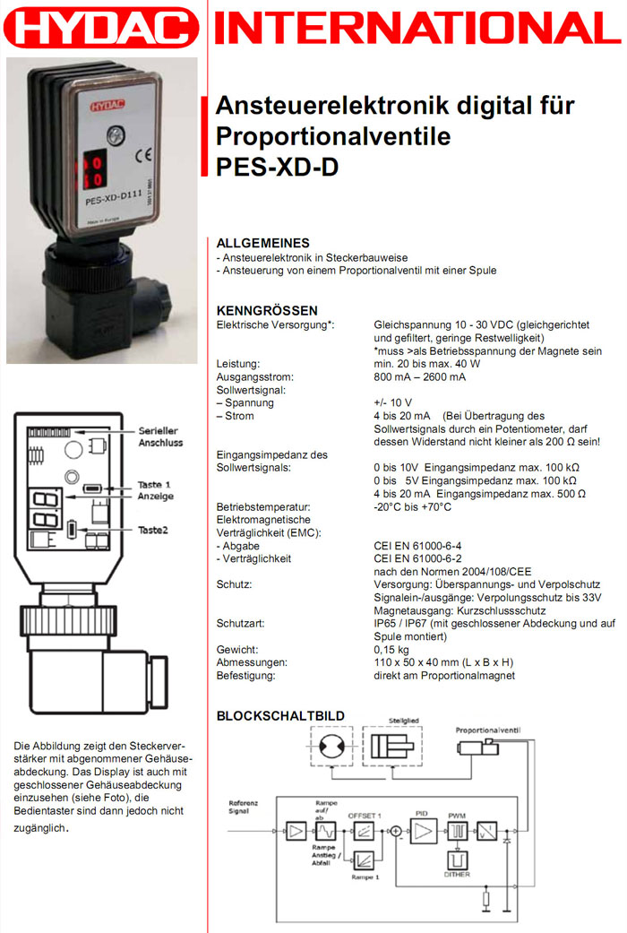 PES-XD-D011,PES-XD-D021,PES-XD-D111,HYDAC電子控制比例閥