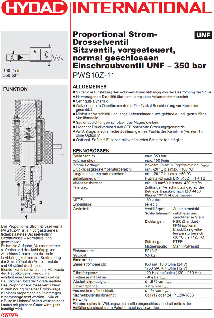 首頁 > 產(chǎn)品&解決方案 > PWS10Z-11-C-N-40-12PG-4.1,PWS10Z-11-C-N-40-24PG-18.0,HYDAC比例針型閥