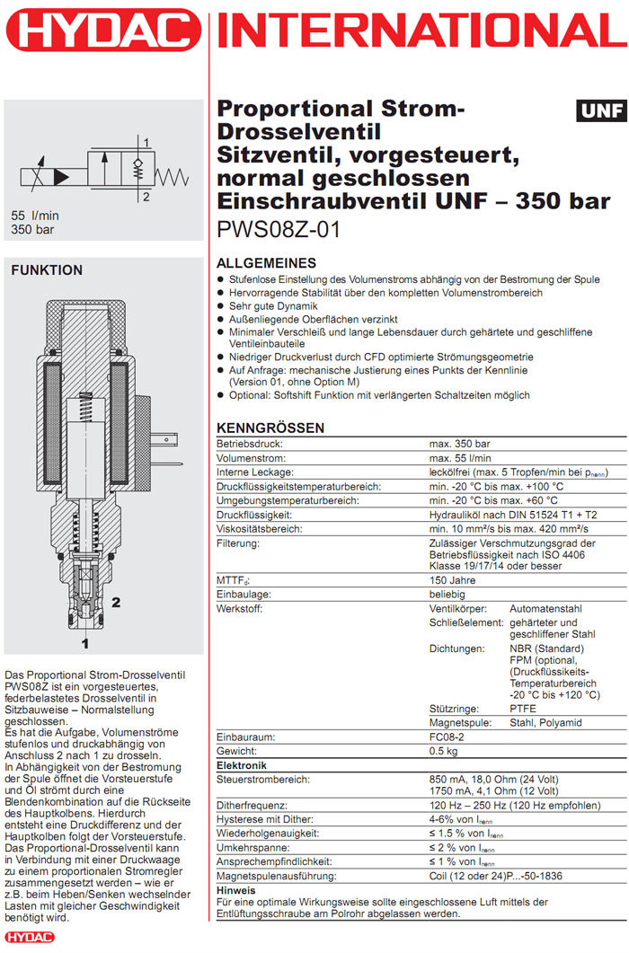 首頁 > 產(chǎn)品&解決方案 > PWS08Z-01-C-N-20-12PG-4.1,PWS08Z-01-C-N-20-24PG-18.0,HYDAC比例針型閥