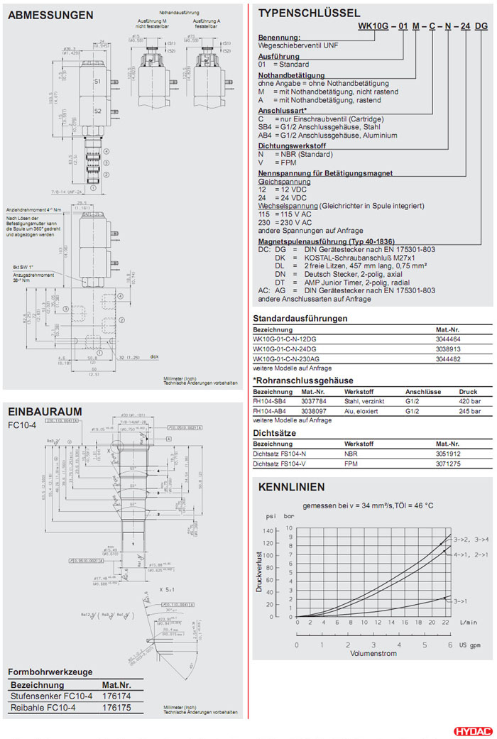 WK10G-01-C-N-12DG,WK10G-01M-C-N-24DG,WK10G-01A-C-N-230AG,HYDAC電磁4/3方向滑閥