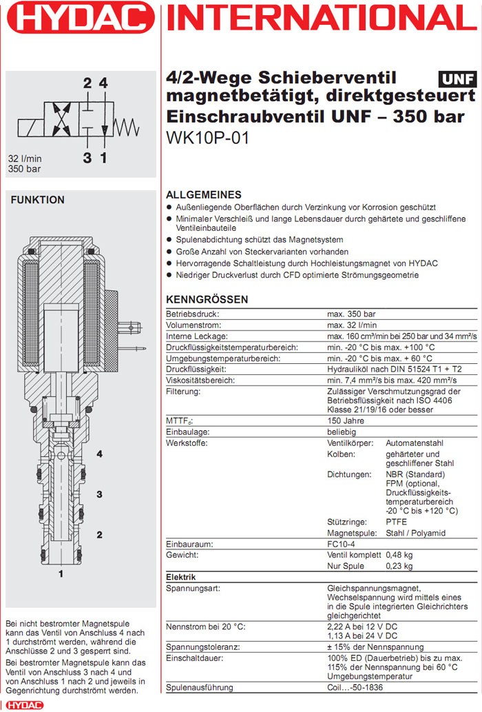 首頁 > 產(chǎn)品&解決方案 > WK10P-01-C-N-24DG,WK10P-01-C-N-230AG,HYDAC電磁4/2方向滑閥