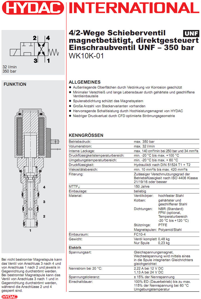 WK10K-01-C-N-24DG,WK10K-01-C-N-230AG,HYDAC電磁4/2方向滑閥