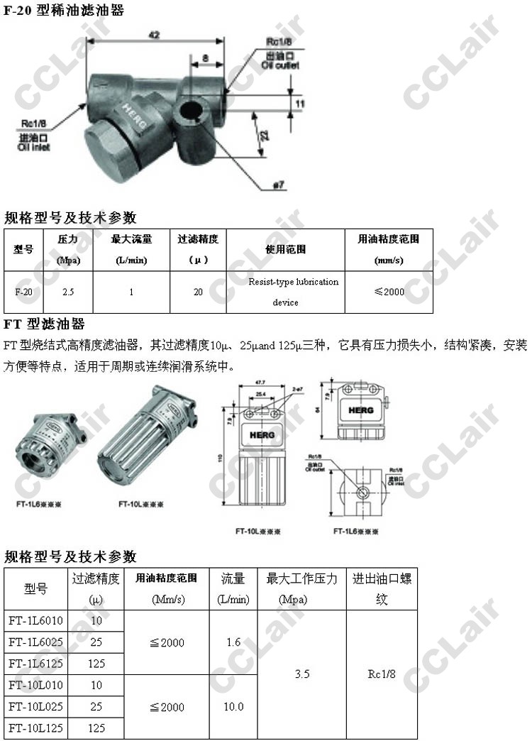 F-20,FT-1L6010,FT-1L6025,FT-1L6125,FT-10L010,FT-10L025,FT-10L125,稀油濾油器