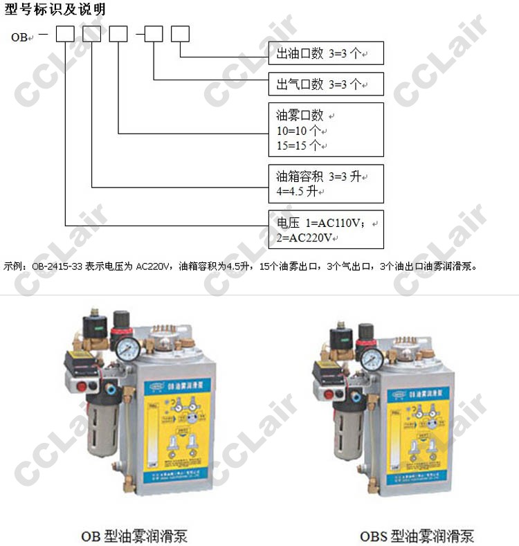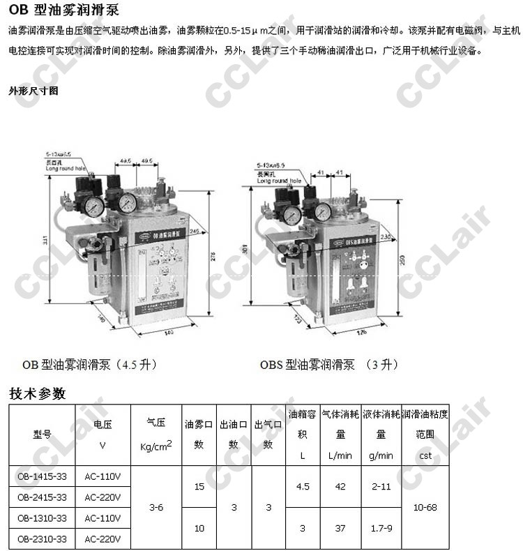 詳細(xì)信息 OB-1415-33,OB-2415-33,OB-1310-33,OB-2310-33,油霧潤滑泵
