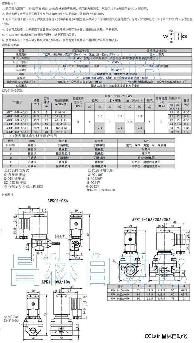 詳細信息 APK01-08A,APK11-08A,APK11-10A,APK11-15A,先導式二通電磁閥