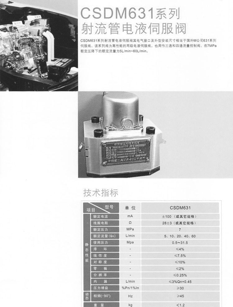 CSDM631-5,CSDM631-10,CSDM631-20,CSDM631-40,CSDM631-60,射流管電液伺服閥
