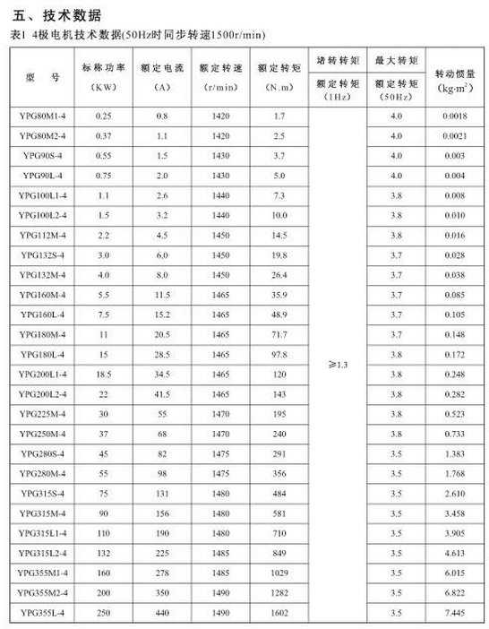 YPG132S-6,YPG132M-6,YPG160M-6,YPG160L-6,YPG180M-6,YPG180L-6,YPG200L1-6,YPG200L2-6,