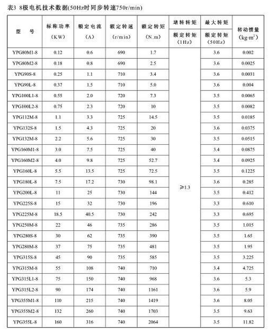 YPG132S-8,YPG132M-8,YPG160M-8,YPG160L-8,YPG180M-8,YPG180L-8,YPG200L1-8,YPG200L2-8,
