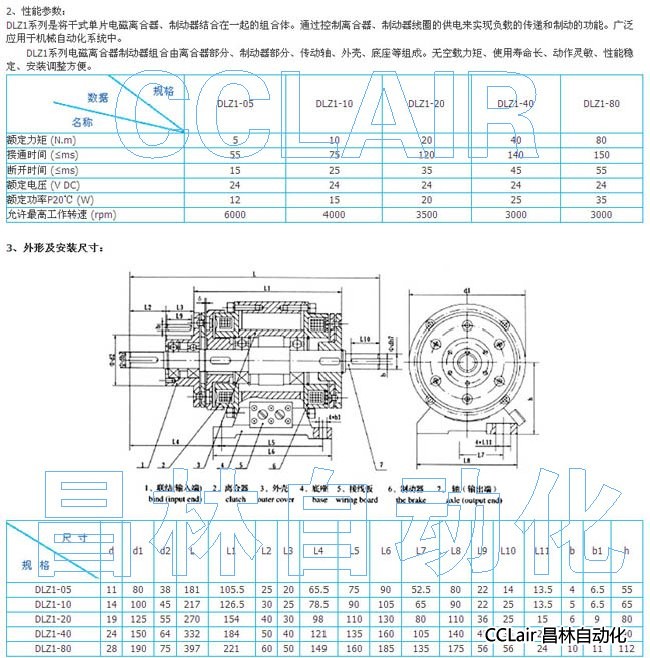 詳細信息 DLZ1-05,DLZ1-10,DLZ1-20,DLZ1-40,DLZ1-80,電磁離合器 制動器組合