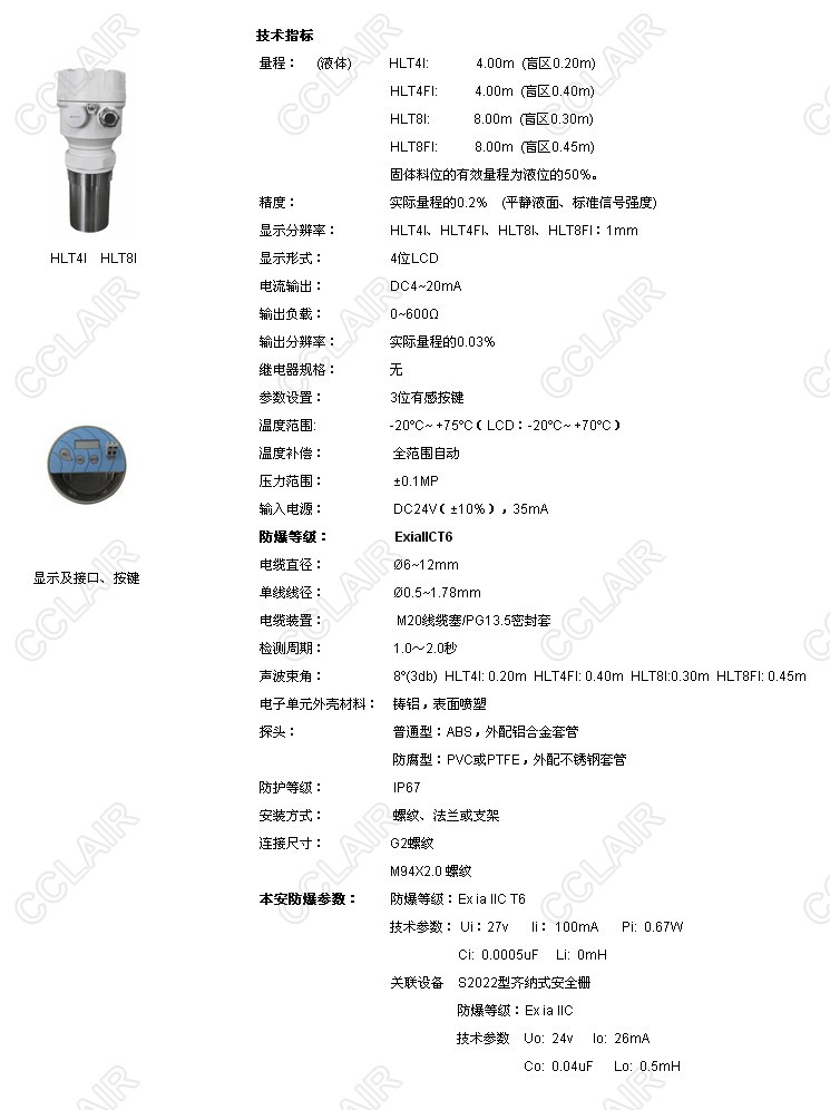HLT4I,HLT4FI,HLT8I,HLT8FI,HLTI本安防爆型超聲波物位計(jì)