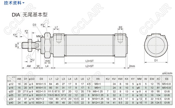 DIA-12M15,DIC-12M150,DID-12M25,DIDE-12M150,DIDO-12M50,DIM-16M15,DIA-32M15,hinaka標準型氣缸