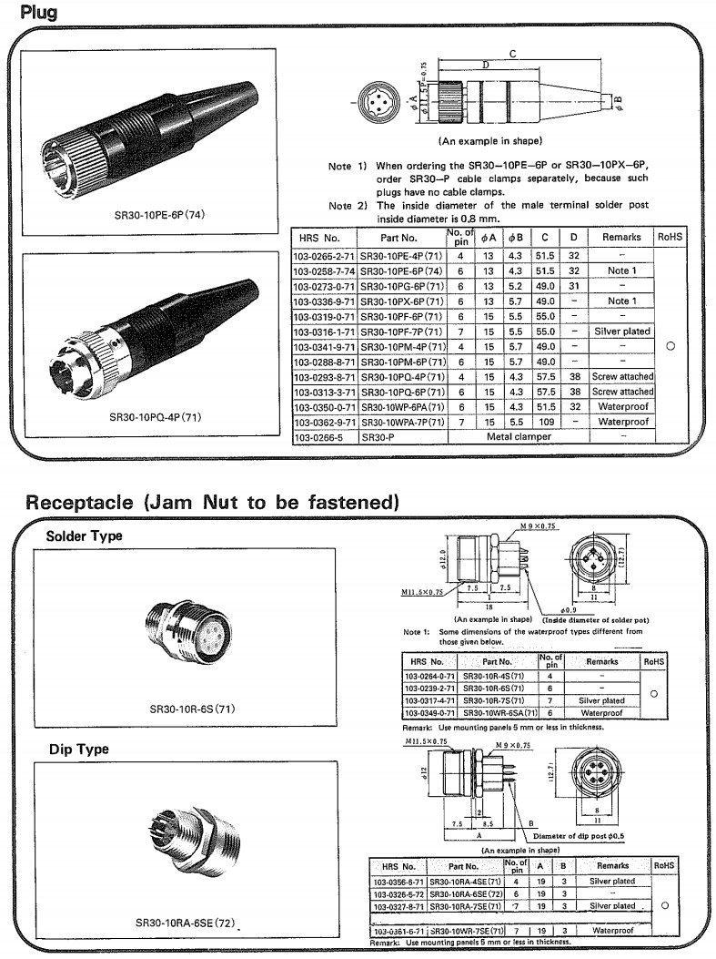 SR30-10RA-7SE,SR30-10RD-6S,SR30-10JE-4S,SR30-10JE-6S,SR30-10JM-6S,