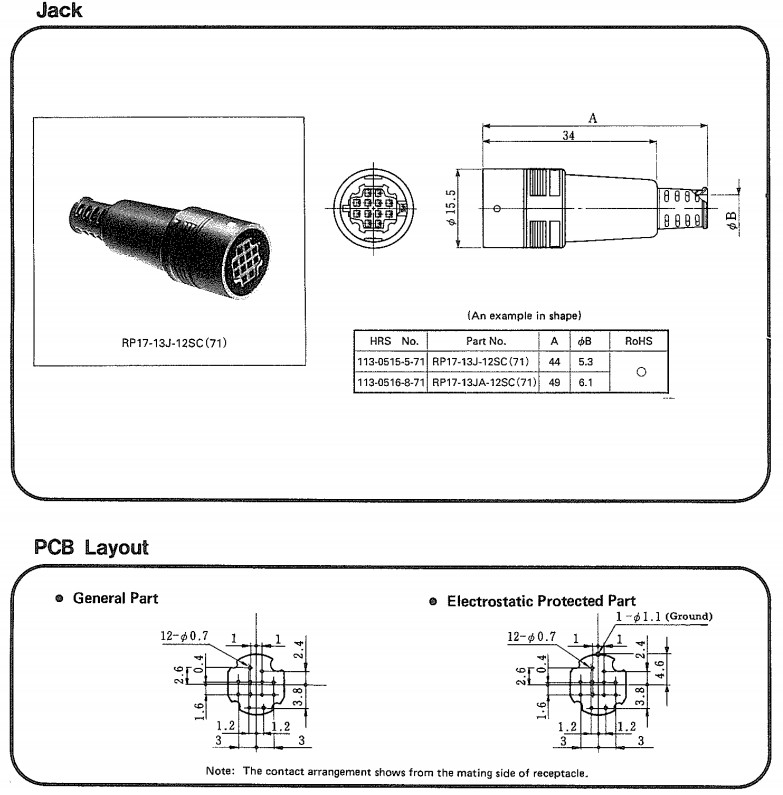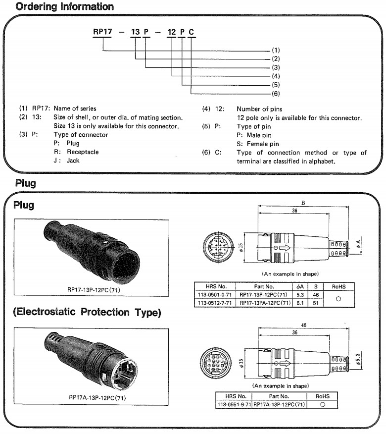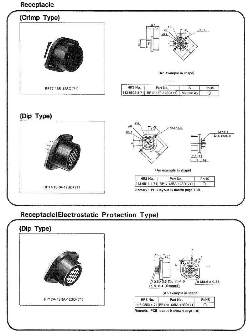 詳細信息 RP17-13P-12PC,RP17-13PA-12PC,RP17-13R-12SC,RP17-13RA-12SD,hirose連接器