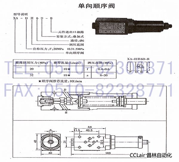 XA-Ha6D-B,XA-Hf6D-B,XA-Fa6D-B,XA-Ff6D-B,單向順序閥