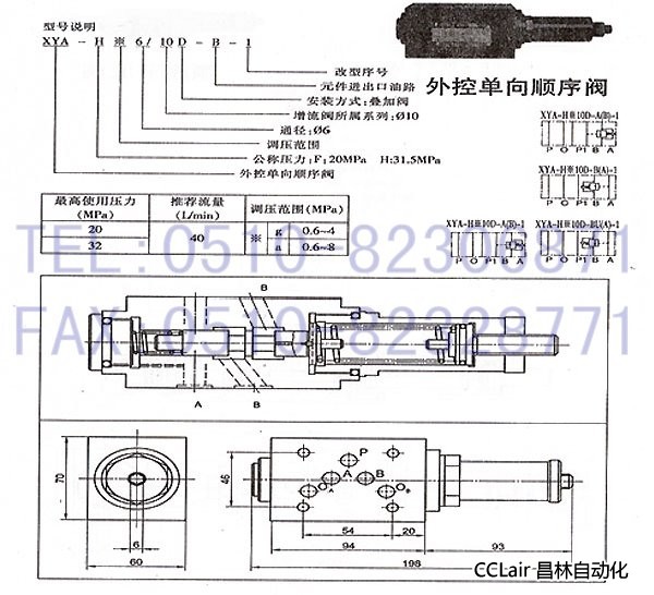 XYA-Fg16D-A(B)-1,XYA-Fa16D-A(B)-1,XYA-Fg16D-B(A)-1,XYA-Fa16D-B(A)-1,外控單向順序閥