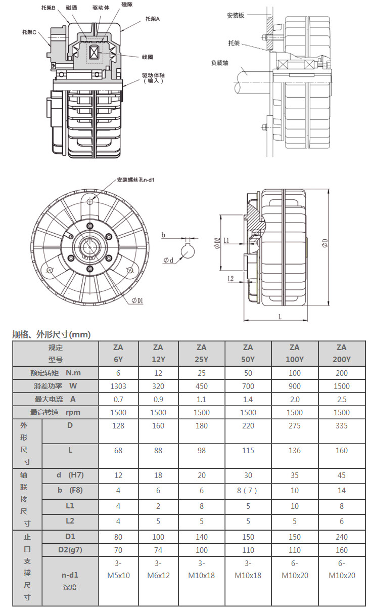 ZA-6Y,ZA-12Y,ZA-25Y,ZA-50Y,ZA-100Y,ZA-200Y,空心軸磁粉制動器