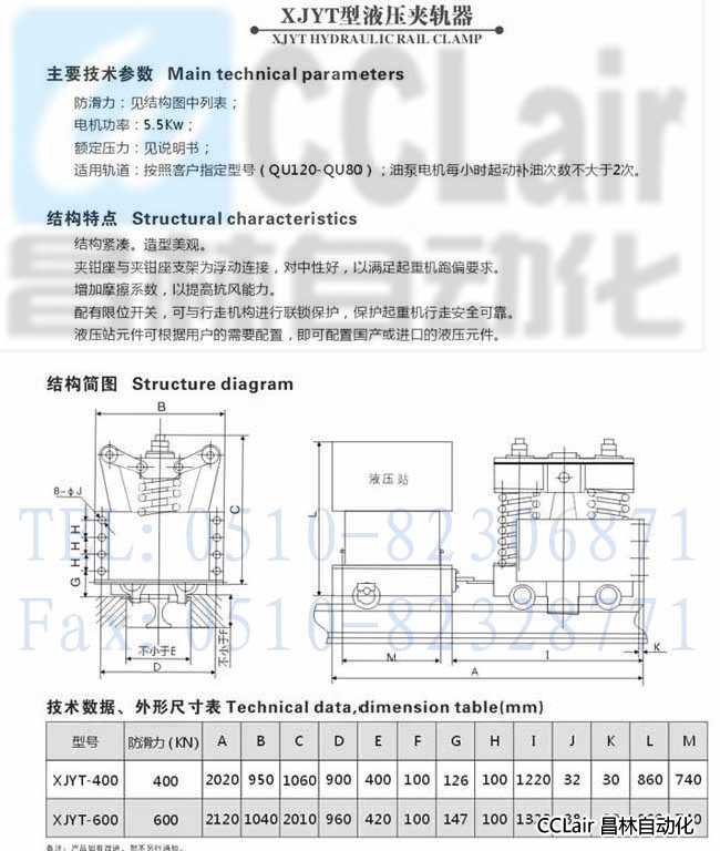 » XJYT-400,XJYT-600,液壓夾軌器 ,