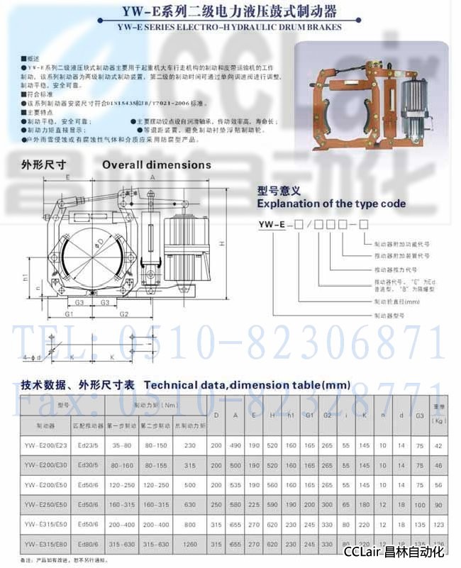 YW-E250/E50,YW-E315/E50,YW-E315/E80,二級(jí)電力液壓鼓式制動(dòng)器