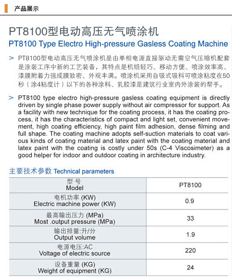 PT8100,電動(dòng)高壓無氣噴涂機(jī)