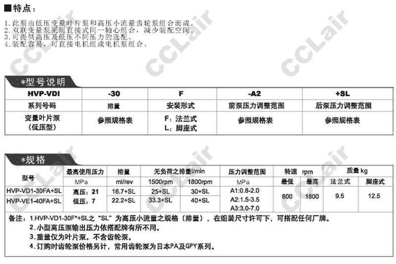 HVP-VD1-30FA+SL,HVP-VE1-40FA+SL,低壓型變量葉片泵