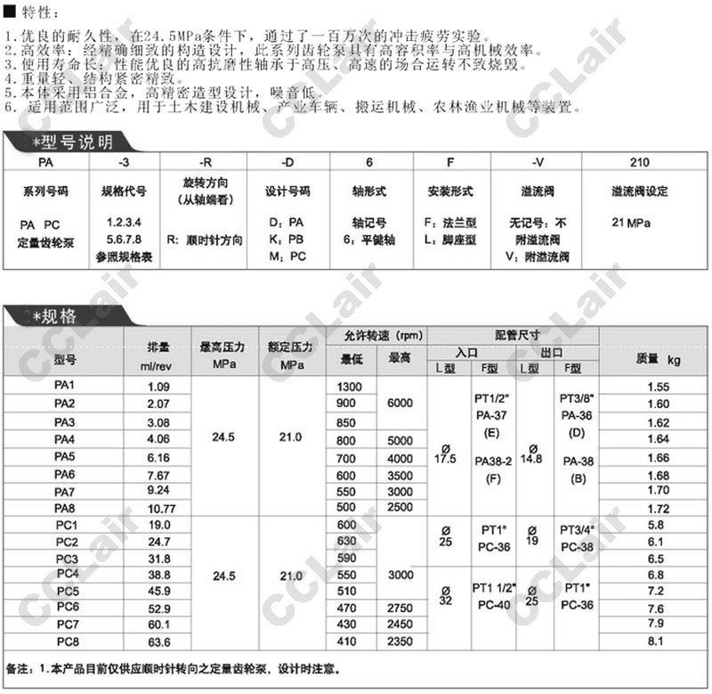PA-1-R-D,PA-2,PA-3,PA-4,PA-5,PA-6,PA-7,PA-8,PC-1,PC-2,PC-3,PC-4,PC-5,PC-6,PC-7,PC-8,定量齒輪泵