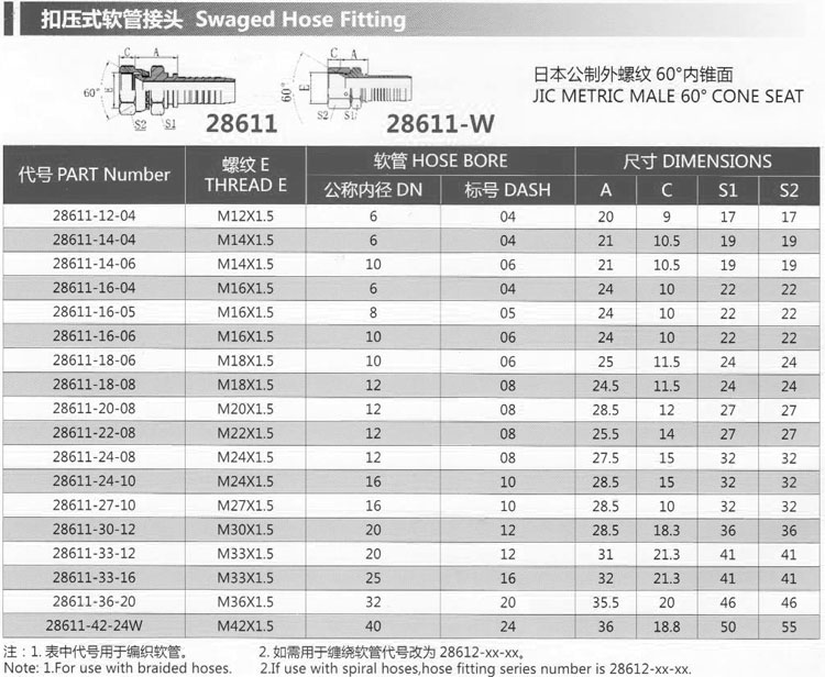 28611-12-04,28611-16-04,28611-20-08,28611-36-20,28611-42-24W,扣壓式軟管接頭