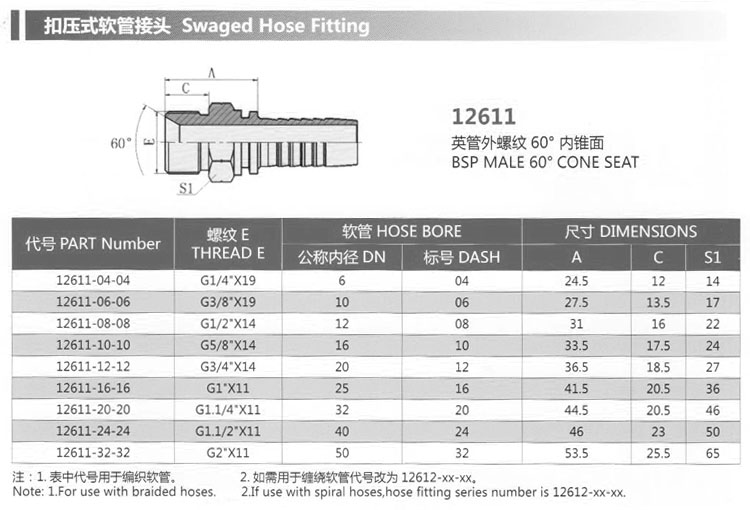 12611-04-04,12611-06-06,12611-08-08,12611-10-10,12611-20-20,12611-32-32,扣壓式軟管接頭
