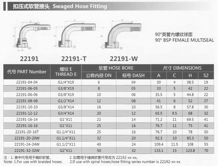 22191-04-04,22191-06-05,22191-08-08,22191-16-14,22191-20-20W,22191-32-32W,扣壓式軟管接頭