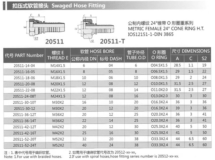 20511-14-04,20511-20-08,20511-36-12T,20511-42-12T,20511-52-24T,扣壓式軟管接頭