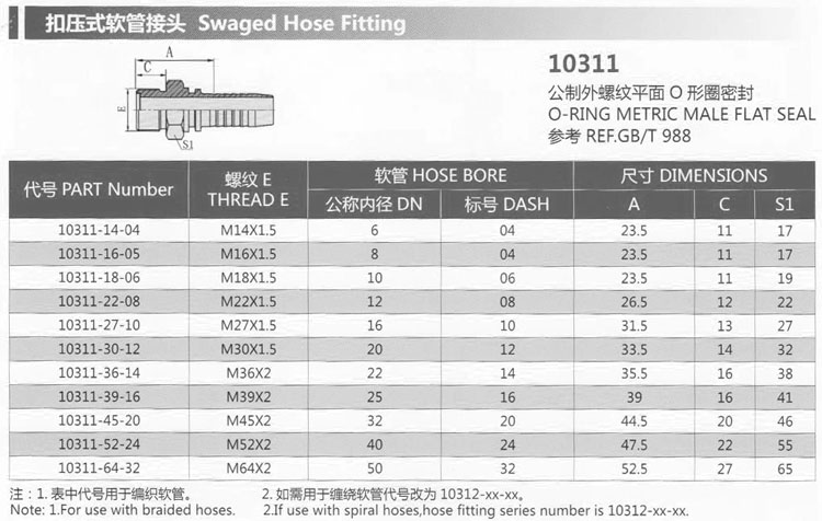 10311-14-04,10311-22-08,10311-27-10,10311-30-12,10311-45-20,10311-52-24,10311-64-32,扣壓式軟管接頭