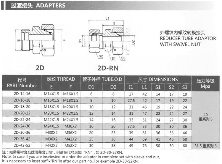 詳細信息 2D-14-16,2D-16-18,2D-18-20,2D-20-22,2D-22-24,2D-24-30,2D-30-36,2D-36-42,2D-42-52,轉(zhuǎn)換接頭
