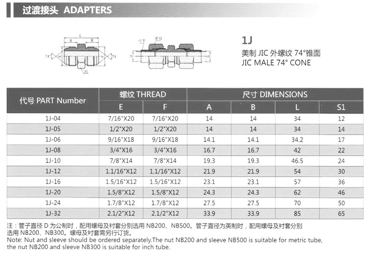 詳細(xì)信息 1J-04,1J-05,1J-06,1J-08,1J-10,1J-12,1J-16,1J-20,1J-24,1J-32,過渡接頭