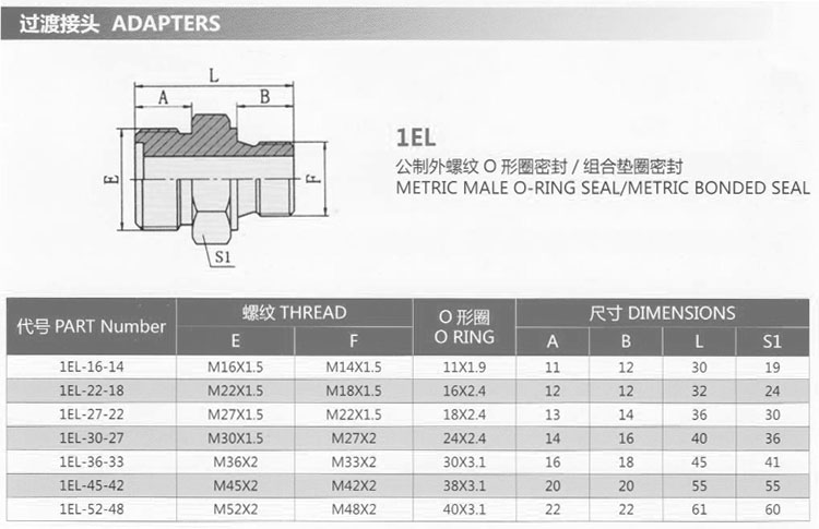 詳細信息 1EL-16-14,1EL-22-18,1EL-27-22,1EL-30-27,1EL-36-33,1EL-45-42,1EL-52-48,過渡接頭