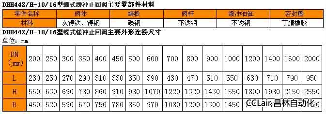 DHH44X/H-10/16型蝶式緩沖止回閥主要技術參數(shù)