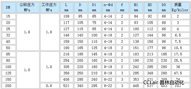 壓力等級:PN(MPa) 0.6 1.0 1.6