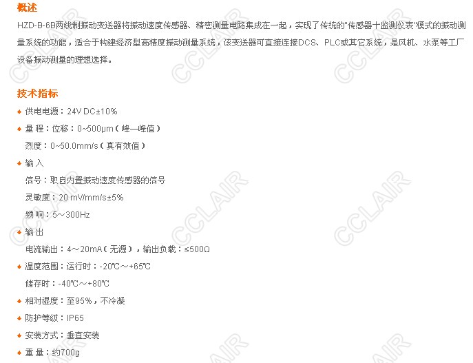 詳細(xì)信息 HZD-B-6B,兩線(xiàn)制振動(dòng)變送器