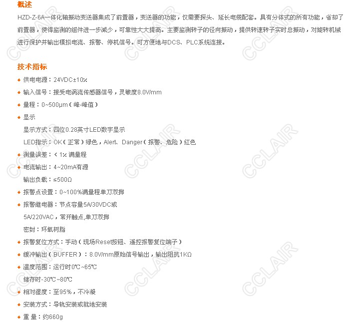 產(chǎn)品: 瀏覽次數(shù):459HZD-Z-6A,一體化軸振動(dòng)變送器