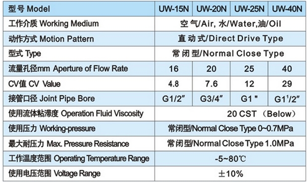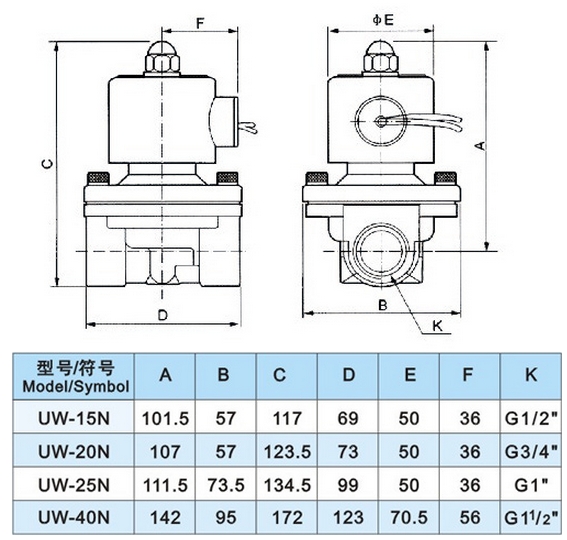 UW-15N,UW-20N,UW-25N,UW-40N,潛水電磁閥
