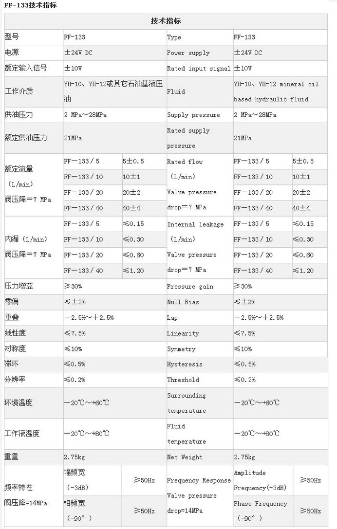 FF-133/5,FF-133/10,FF-133/20,FF-133/40,電液伺服閥