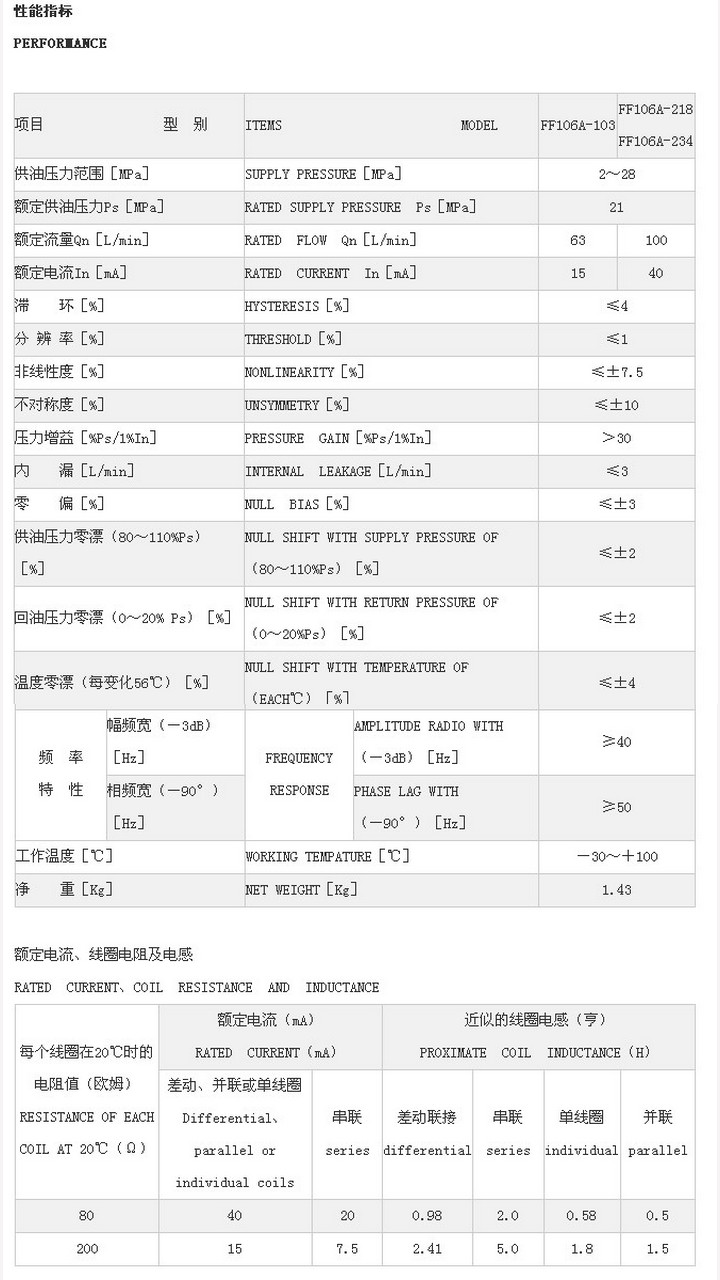 詳細(xì)信息 FF106A-103,FF106A-218,FF106A-234,電液伺服閥
