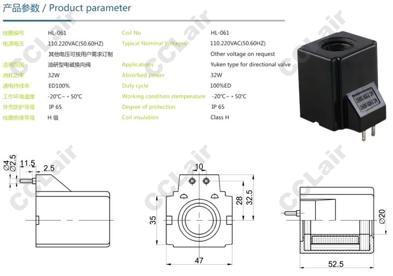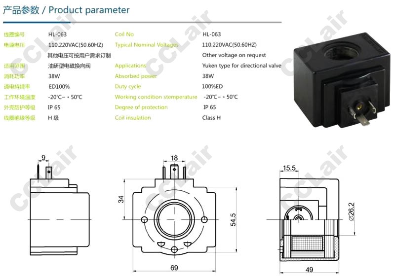 詳細(xì)信息 HL-061,HL-062,HL-063,HL-064,HL-065,HL-066,HL-067,HL-068,HL-069,HL-070,HL-071,HL-072,方向閥用電磁鐵線圈