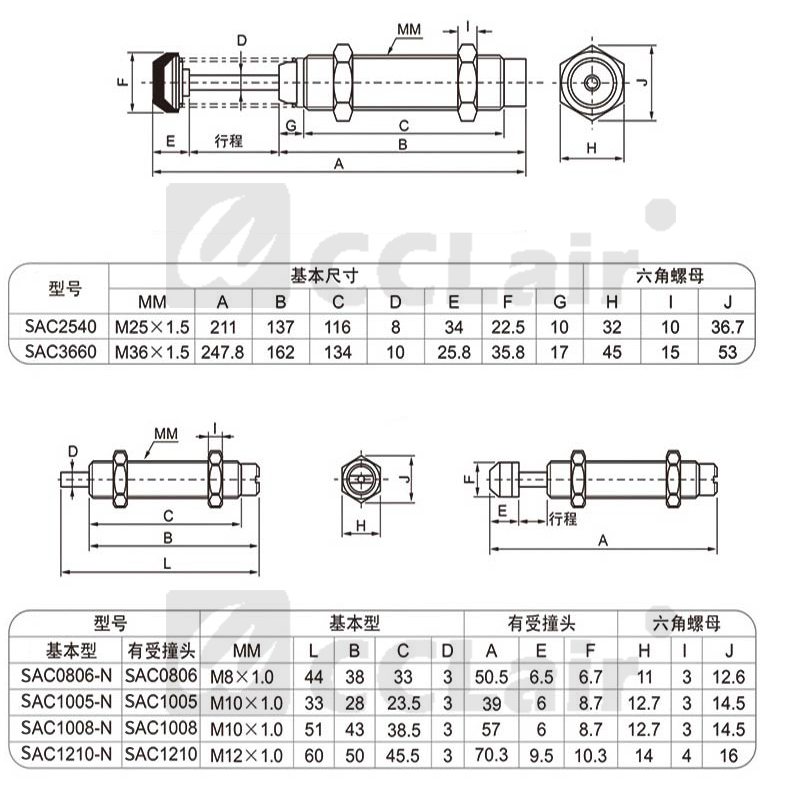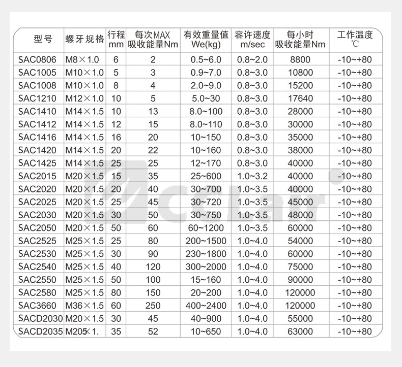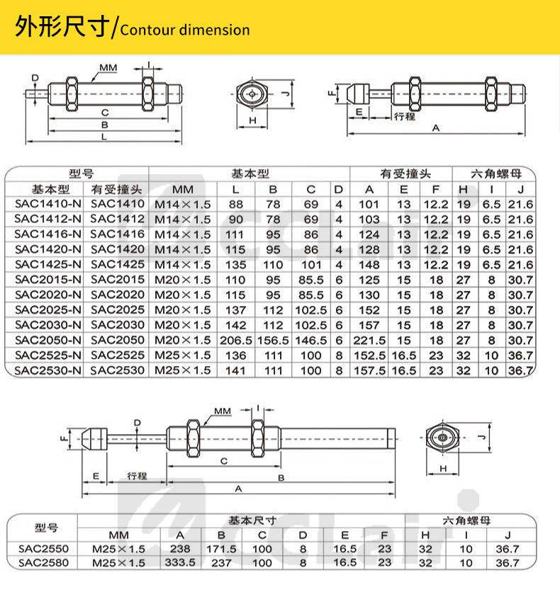 SAC-0806N,SAC-0806C,SAC-1005N,SAC-1416N,SAC-1416C,SAC-2020N,SAC-2020C,SAC-2525N,SAC-2050C,SAC-1210N,SAC-1210C,SAC-1408N,SAC-1408C,SAC-1412N,SAC-1412C,SAC-1005C,SAC-1008N,SAC-1008C,緩沖器,臺灣氣立可CHELIC型 SAC不可調(diào)式油壓