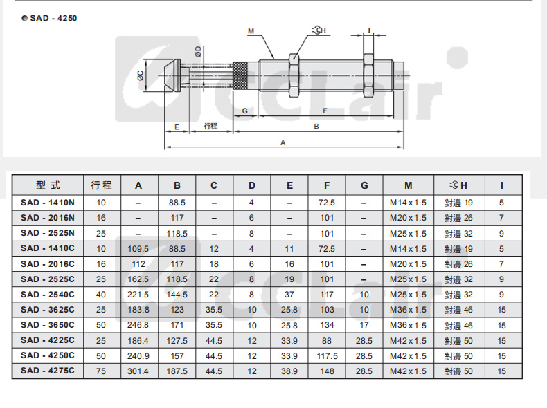 詳細(xì)信息 SAD-1410N,SAD-1410C,SAD-2016N,SAD-2016C,SAD-2525N,SAD-2525C,SAD-2540C,緩沖器,臺(tái)灣氣立可CHELIC型 SAC不可調(diào)式油壓 SAD-3625C,SAD-3650C,SAD-4225C,SAD-4250C,SAD-4275C,