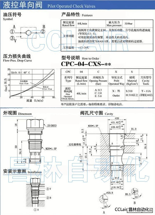 詳細信息 CPC-04-AXS,CPC-04-CXS,CPC-04-EXS,CPC-04-AXH,CPC-04-CXH,CPC-04-EXH,插式液控單向閥