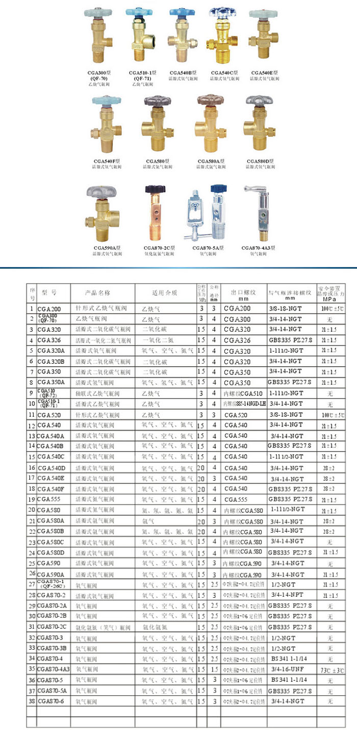 CGA200,CGA300,CGA320,CGA326,CGA320A,CGA350,CGA350A,CGA520,CGA870-1,瓶閥