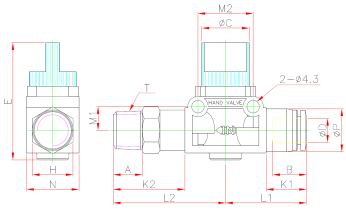 | Model | ¢D | T | ¢P | H(Hex) | ¢C | N | E | B | A | K1 | K2 | L1 | L2 | M1 | M2 | WEIGHT(g) | BOX(EA) |